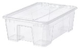 IKEA's SAMLA series is clear, lightweight plastic in an a range of sizes, all stackable to some degree.